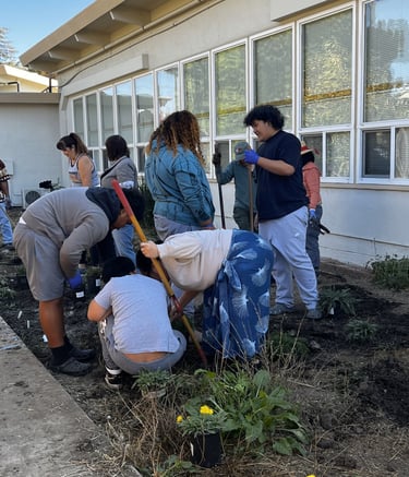 Doug Tallamy, a professor of entomology and wildlife ecology at the University of Delaware, is one of the leading voices for “rewilding”—the act of restoring nature in the places we live. His vision replaces sterile, ecologically empty landscapes with plants that are native specifically to where you live. These plants provide the best food and shelter for the birds, bees, butterflies, beetles, and frogs we share our neighborhoods with. Down by the Bay Native Plant Nursery learned about the catastrophic decline in native insect, bird, and plant species, how they are all inextricably linked together, and how humans rely on healthy and functioning ecosystems for our own survival. When DBTB searched for nurseries that carried native plants, they found none in Hayward, and in fact, would need to travel about half an hour to find one. To mend the earth and restore our local habitat DBTB with TCEC recognize the need to large quantities of native plants. DBTB and TCEC are wholly invested in making our cities a better, more beautiful place. Tri-city Ecology placed us in touch with Jane Chua-Couzens a landscape designer walked the land with us, and we began to dream of what the empty lot could be.